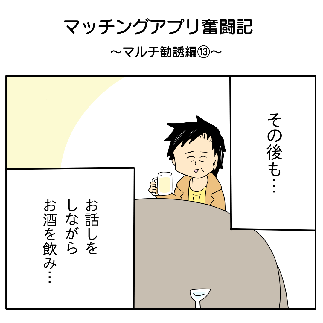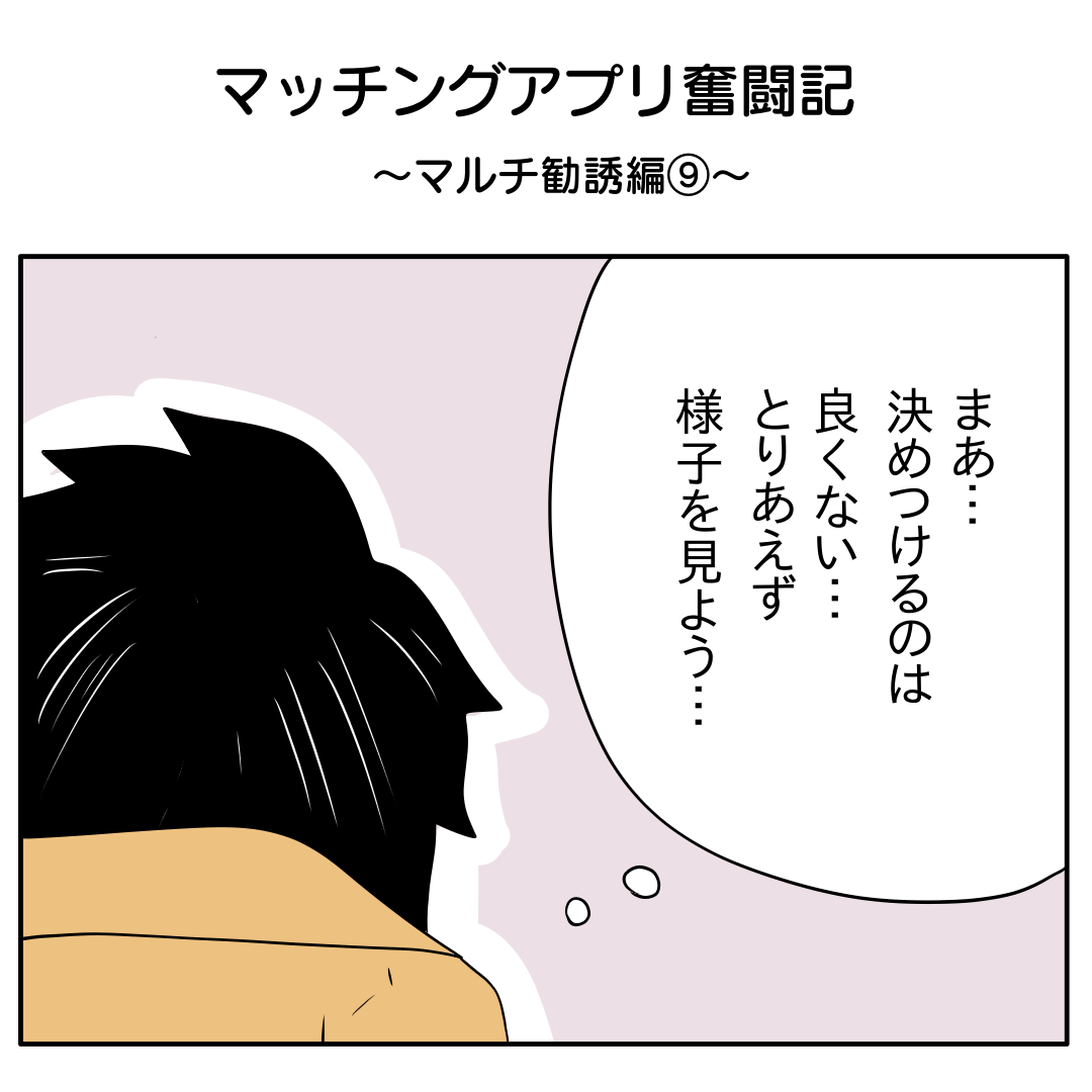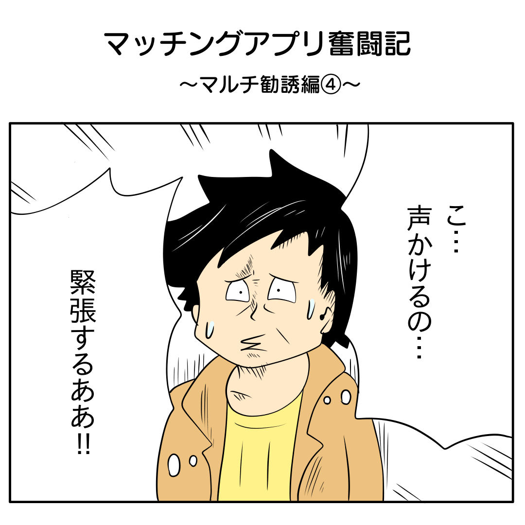 マッチングアプリ奮闘記〜マルチ勧誘編④〜 老け顔コメント毎回声かけるの緊張するのですよね(笑) ↓次のお話へのリンクがあります。第5話【先行公開】マッチングアプリ奮闘記~マルチ勧誘編⑤~ ... 続きを読む